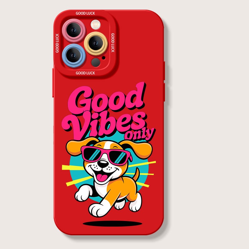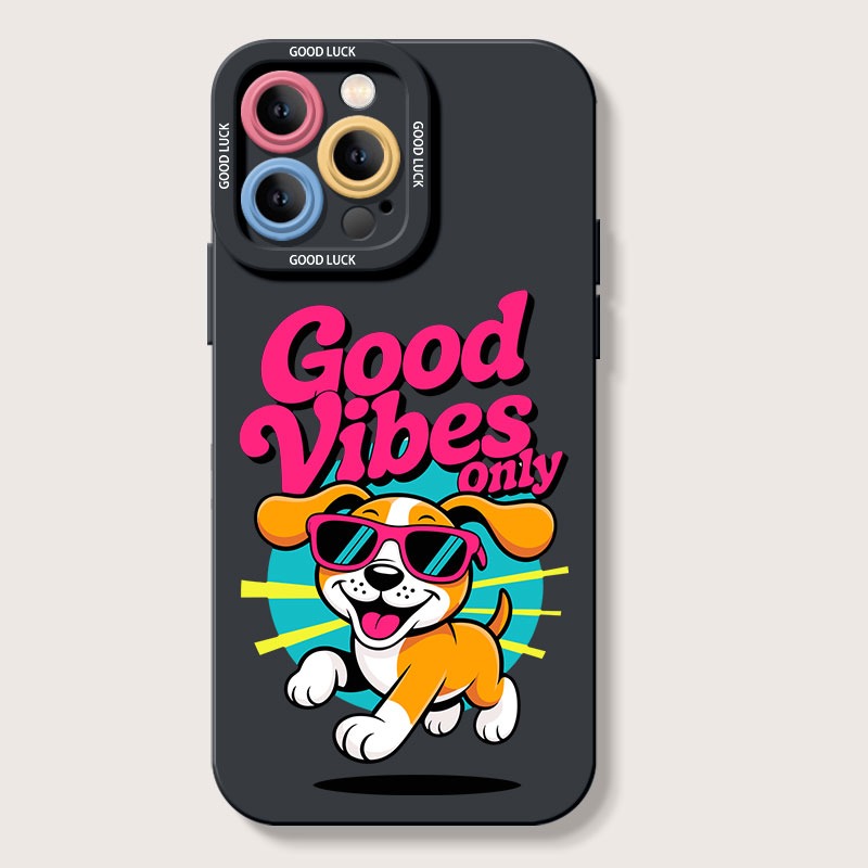 Premium printed iPhone case with a stylish design: Good Vibes Only Pup Party Silicone Case for Apple iPhone Series