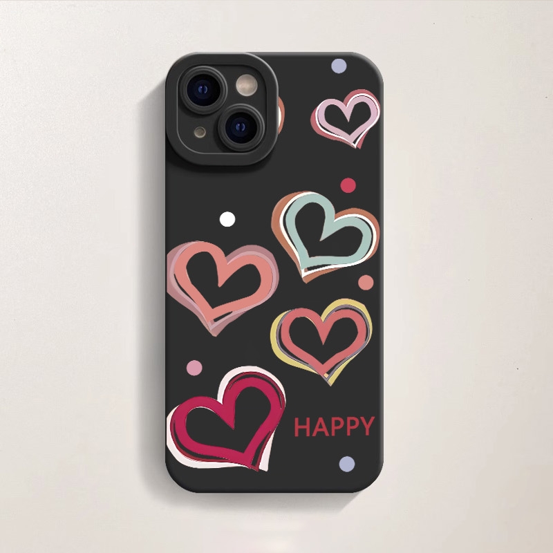 Premium printed iPhone case with a stylish design: Colorful Hearts & Dots Delight Silicone Case for Apple iPhone Series