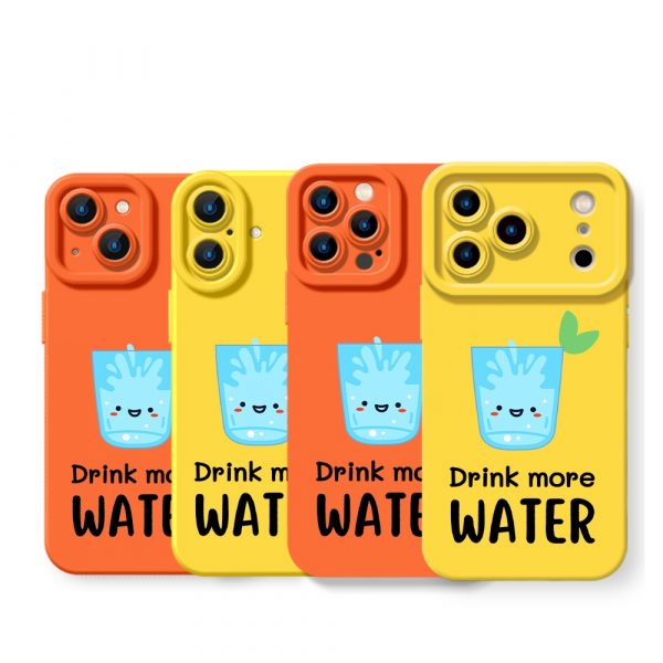 Premium printed iPhone case with a stylish design: Hydration Reminder Cheerful Orange Silicone Case for Apple iPhone Series