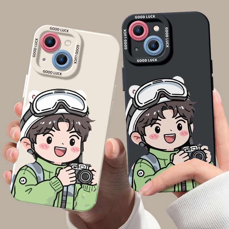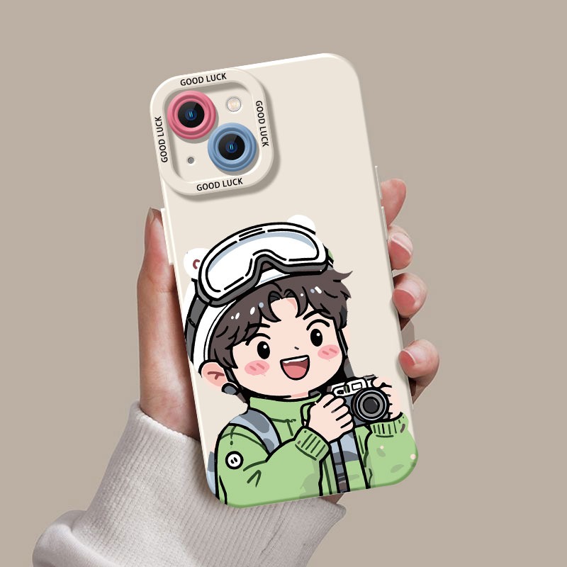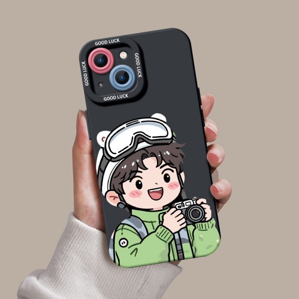 Premium printed iPhone case with a stylish design: Adventurous Cartoon Photographer Silicone Case for Apple iPhone Series