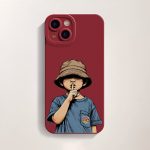Premium printed iPhone case with a stylish design: Quiet Kid in Cool Hat Silicone Case for Apple iPhone Series