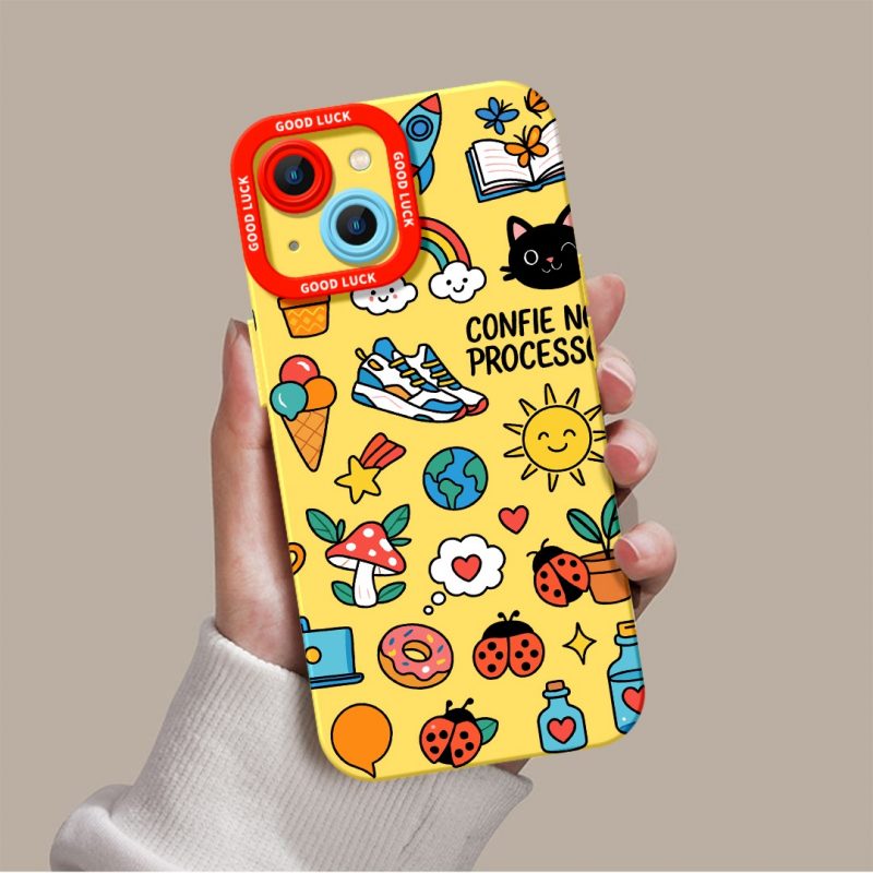 Whimsical Doodle Charm Silicone Case for Apple iPhone Series